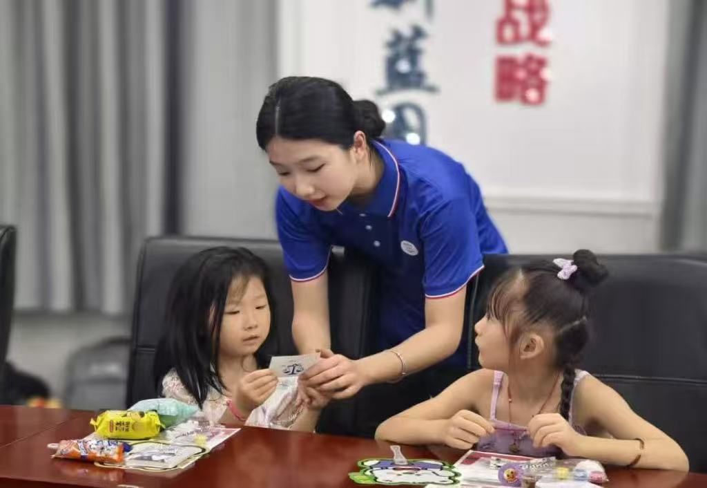 手工制作环节同样紧扣“红色+推普”主题。队员们分发印有“井冈山精神”“普通话推广”字样的涂色卡片,让孩子们一边涂色,一边用普通话念出卡片上的文字。“我要把‘坚定信念’涂成红色,就像红军的旗帜一样!”一位7岁的小妹妹一边涂画,一边大声念出词语,队员们在旁适时纠正她“念”字的声调,让学习在轻松氛围中自然发生。